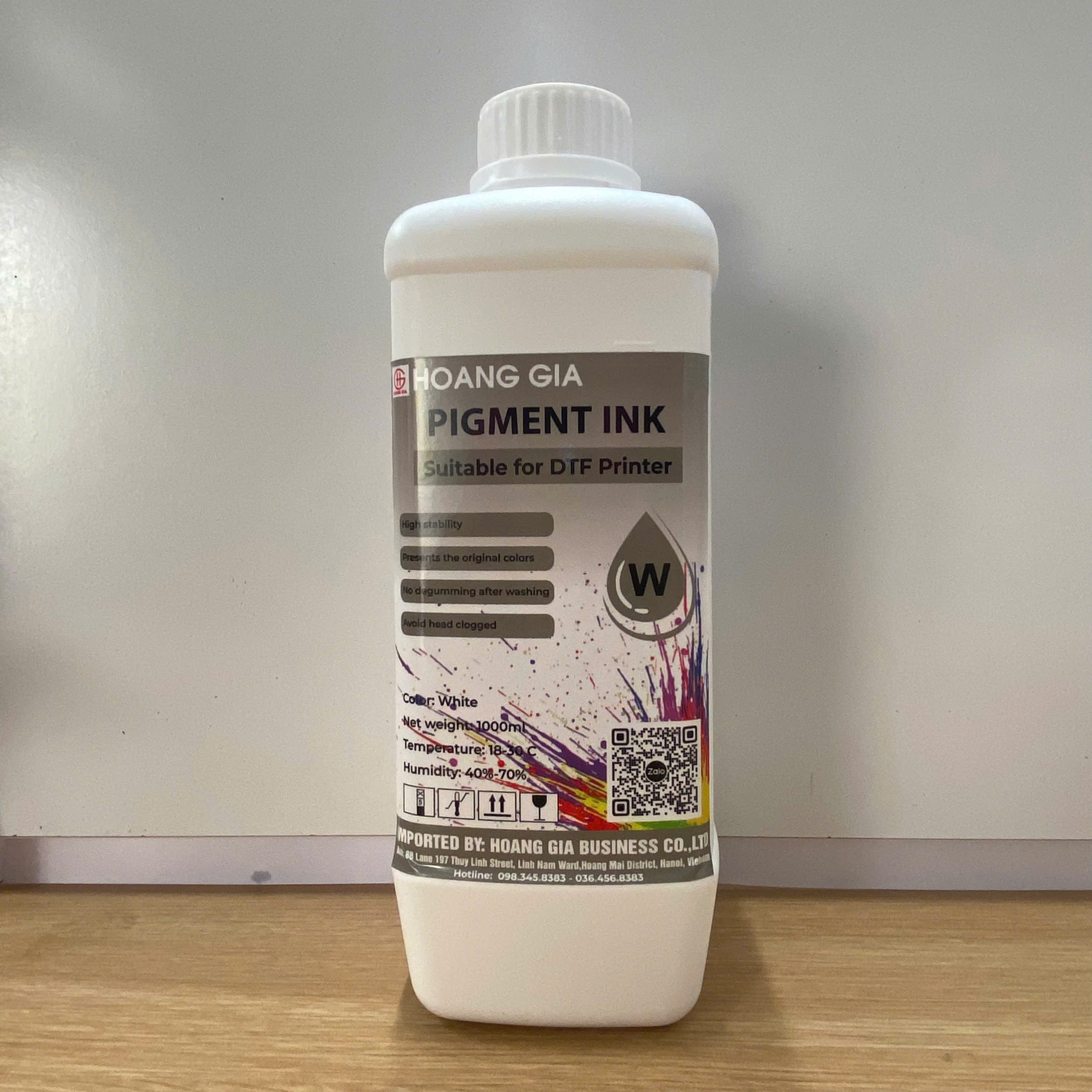 Mực in pet gồm Màu Trắng và CMYK loại cao cấp, màu in tươi sang, ít trầm tích, không làm tắc đầu phun.